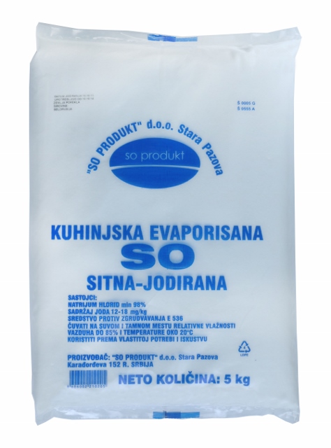 Ambalaža u koju se pakuje kuhinjska evaporisana so jesu: 120g, 250g, 500g, 1kg, 5kg, 10kg, 25kg, 50kg.
