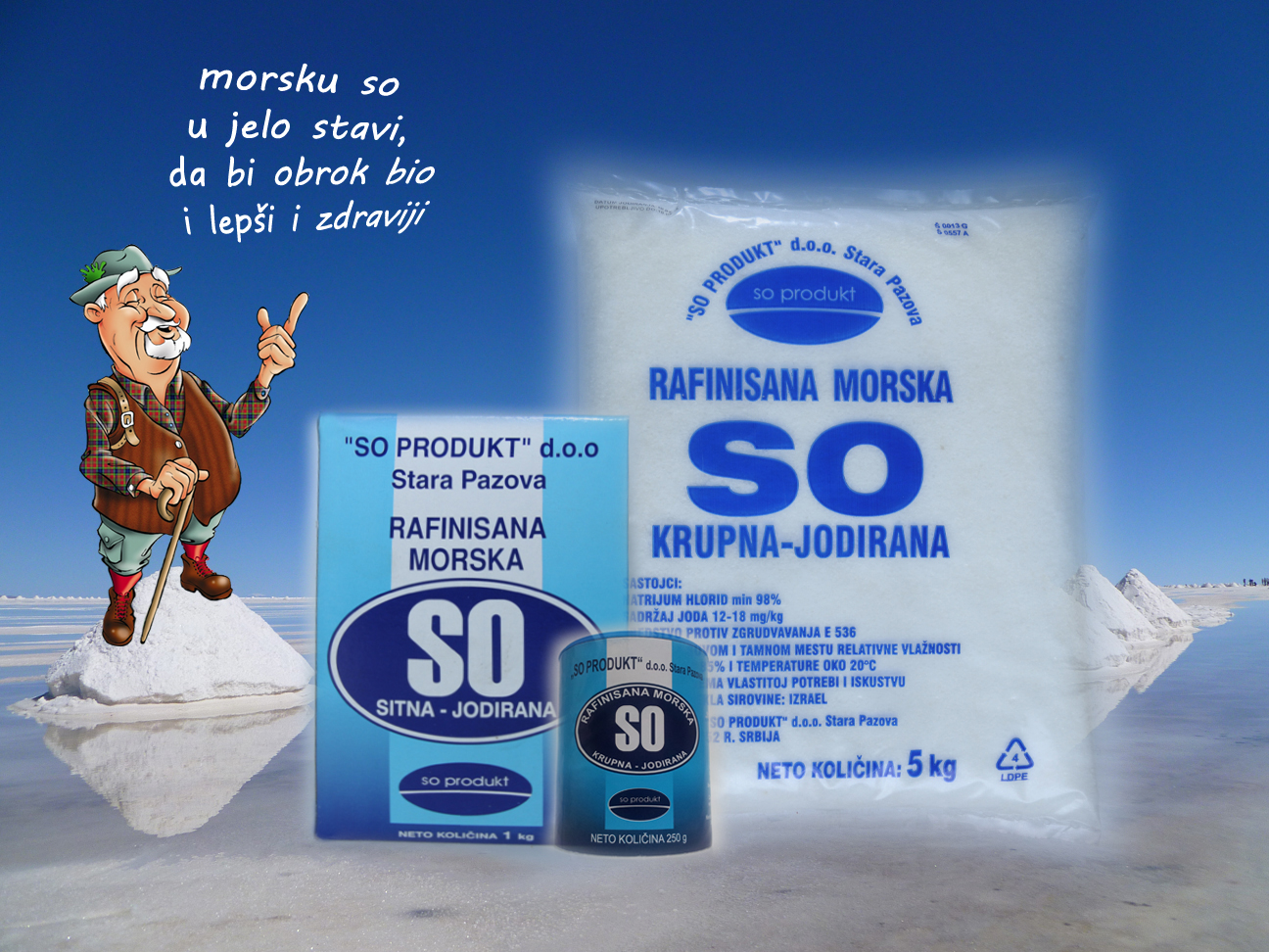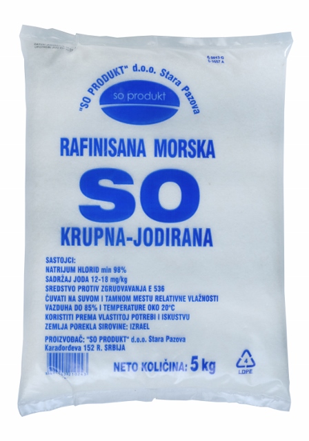 Ambalaža u koju se pakujem rafinisana morska so jeste: 250g, 1kg, 5kg, 25kg.